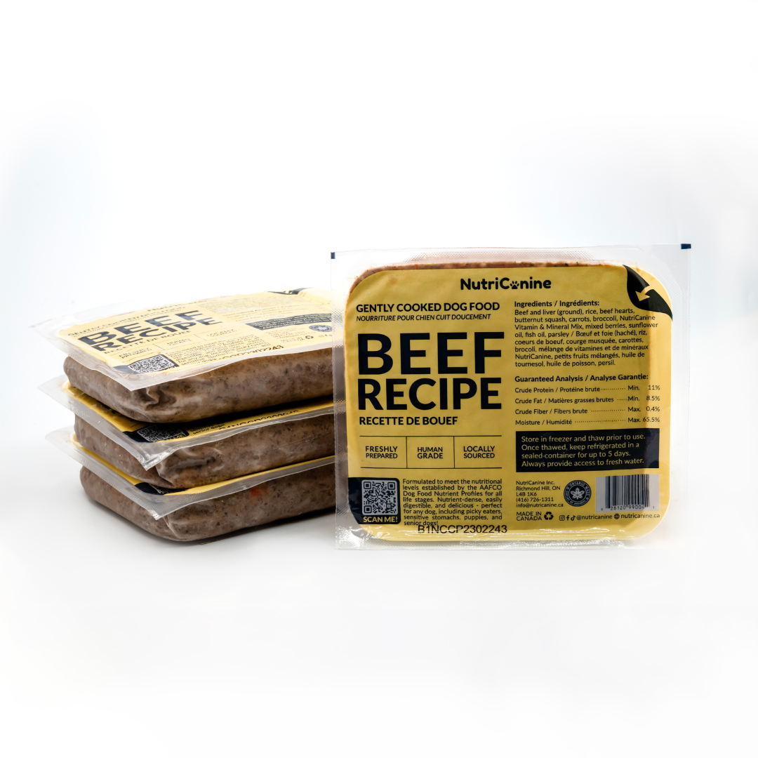 Indulge your dog with our Gently Cooked Beef Recipe. Bursting with the goodness of fresh ground beef, antioxidant-rich berries, and highly digestible rice, this meal offers a taste of true nourishment.