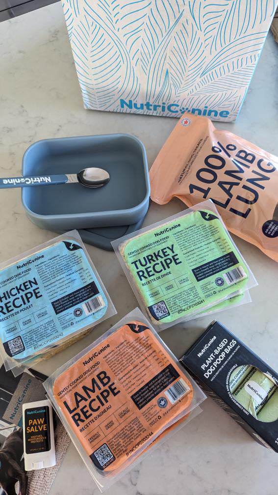 Included as a complimentary gift in your dog's first topper plan order, NutriCanine's Topper Welcome Package is a paw-some introduction to our personalized meal plans. Delight in the guidance of our comprehensive "Welcome Guide," tailored to your pup's needs, while keeping meals fresh with our premium silicon container. Complete with a NutriCanine branded stainless steel spoon, it's the perfect start to a healthier, happier dining experience for your furry friend.